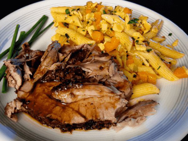Nudelsalat (Penne; 4 Portionen) mit Möhren und frischen Paprika als leckere Beilage stilvoll zubereitet. Dazu passt Schweine-Nackenbraten und ein kühles Bier.