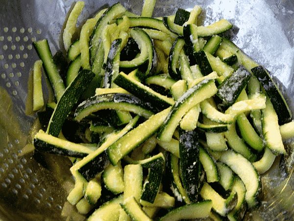 Pasta mit frittierten Zucchini-Stäbchen (4 Portionen) ist ein ausgefallenes und leckeres Bandnudel-Gericht. Dazu passt ein Sauvignon Blanc.