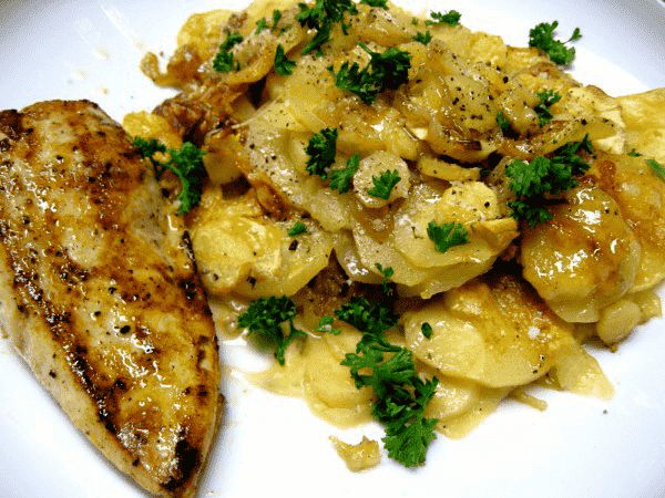 Die Zwiebel in dünne Scheiben und anbraten, bis sie weich und durchsichtig sind. Am Ende mit dem Thymian würzen. Dann in einer Ofen-festen Pfanne die sehr dünn geschnittene Pastinakenscheiben abwechselnd mit den Zwiebeln und dem geriebenen Käse hinein geben. Ab damit in den Ofen und 20 Minuten bei 200° backen, bis die Scheiben weich sind. |